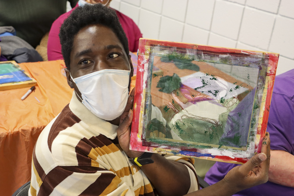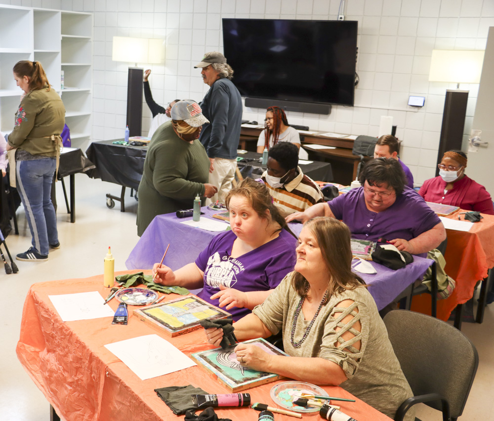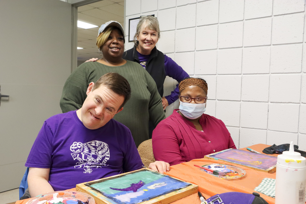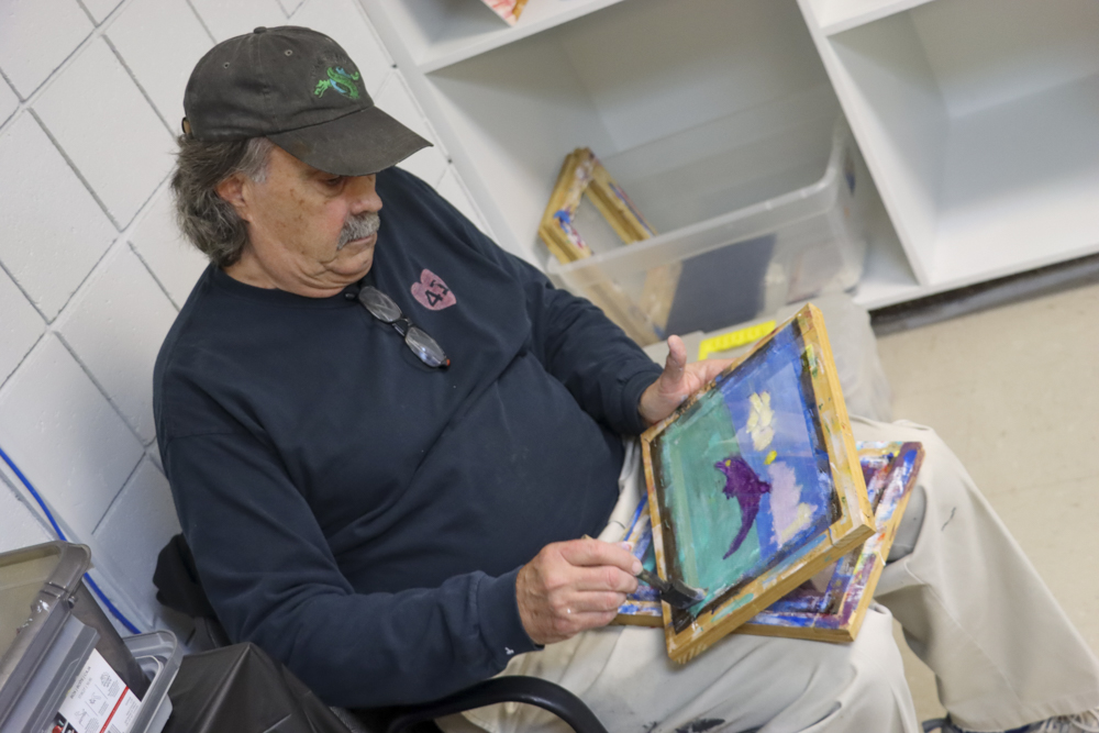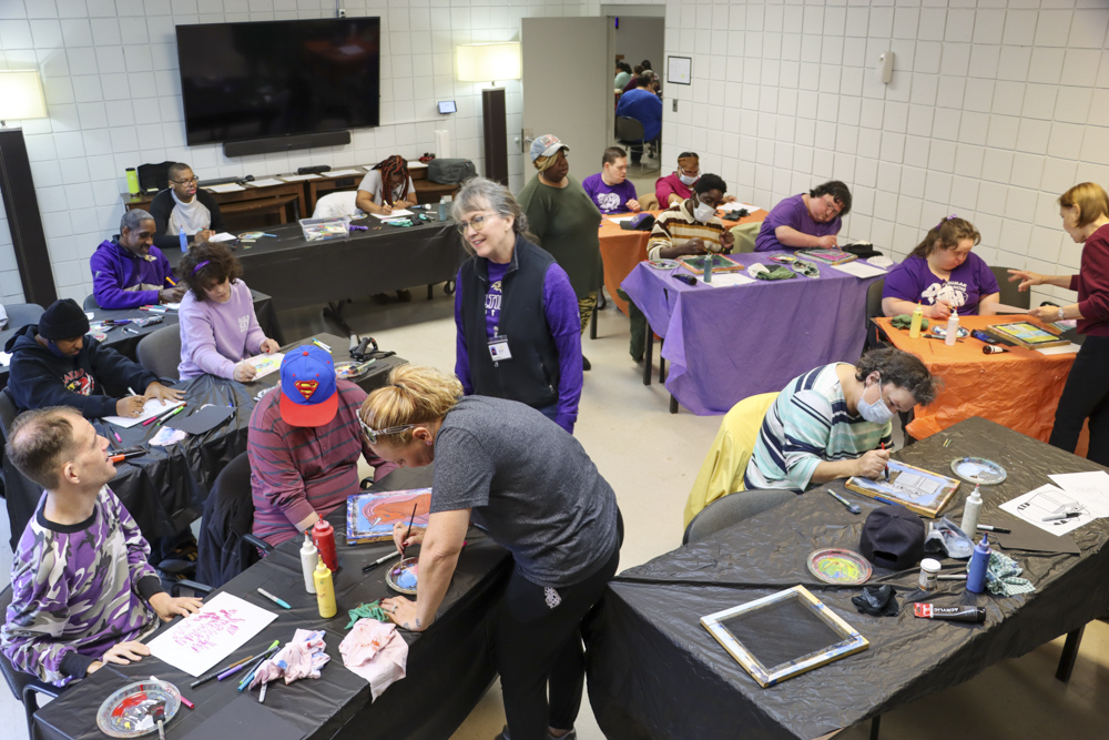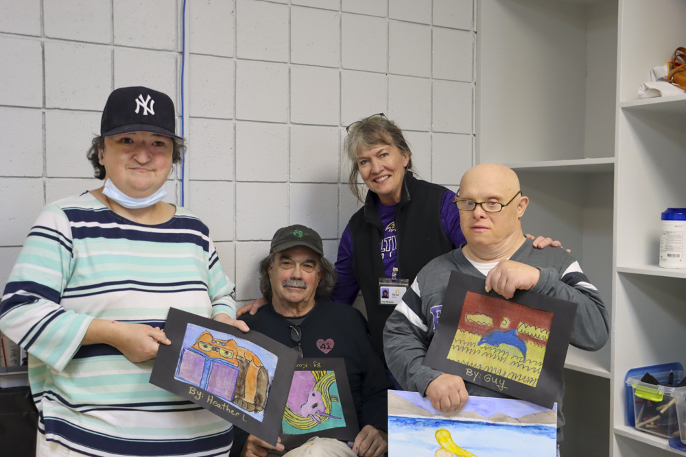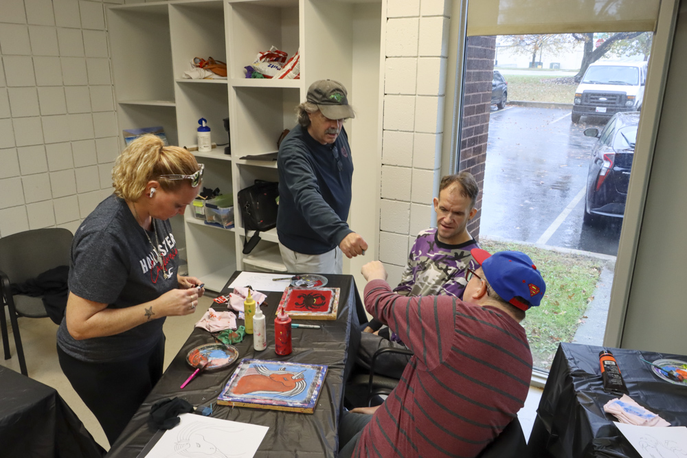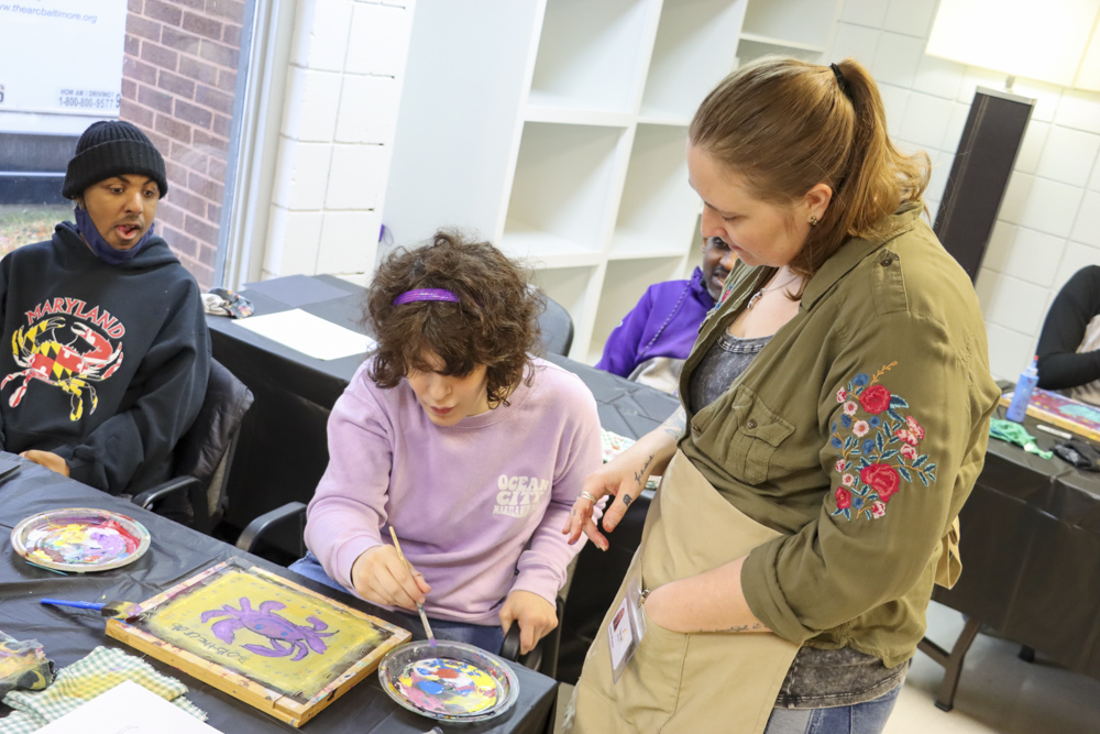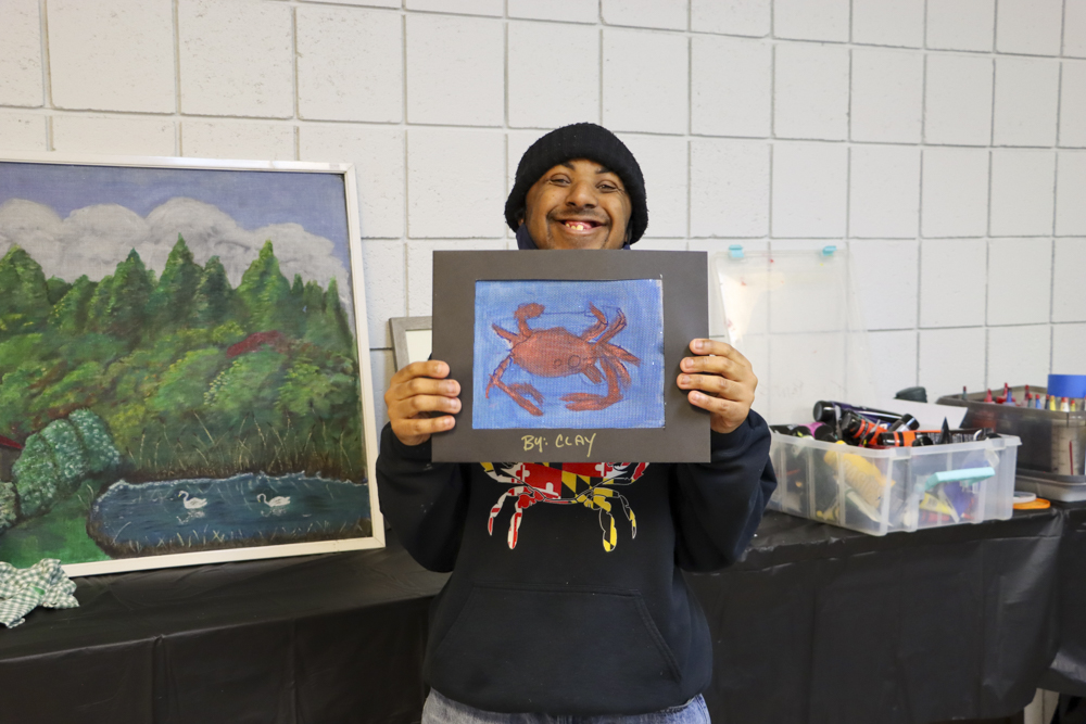 An old Baltimore art form got a tryout for folks from our Towson and Dundalk day programs last week when Master Screen Painter Michael Seipp came in for a day of instruction. From priming the screens and drawing selected images to the final painting of crabs, lighthouses, and dolphins, it was fun for all.