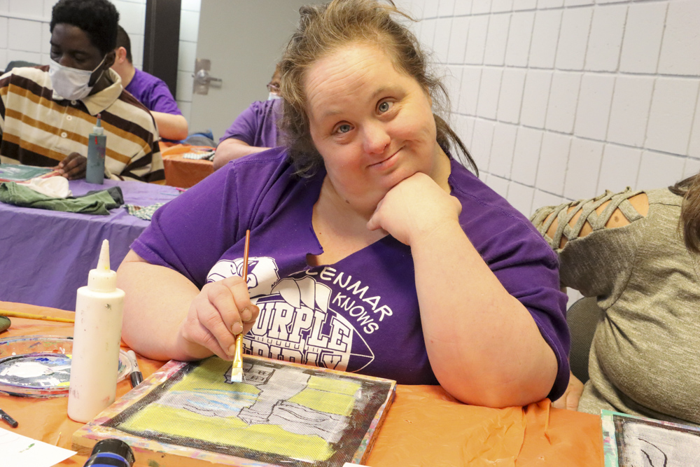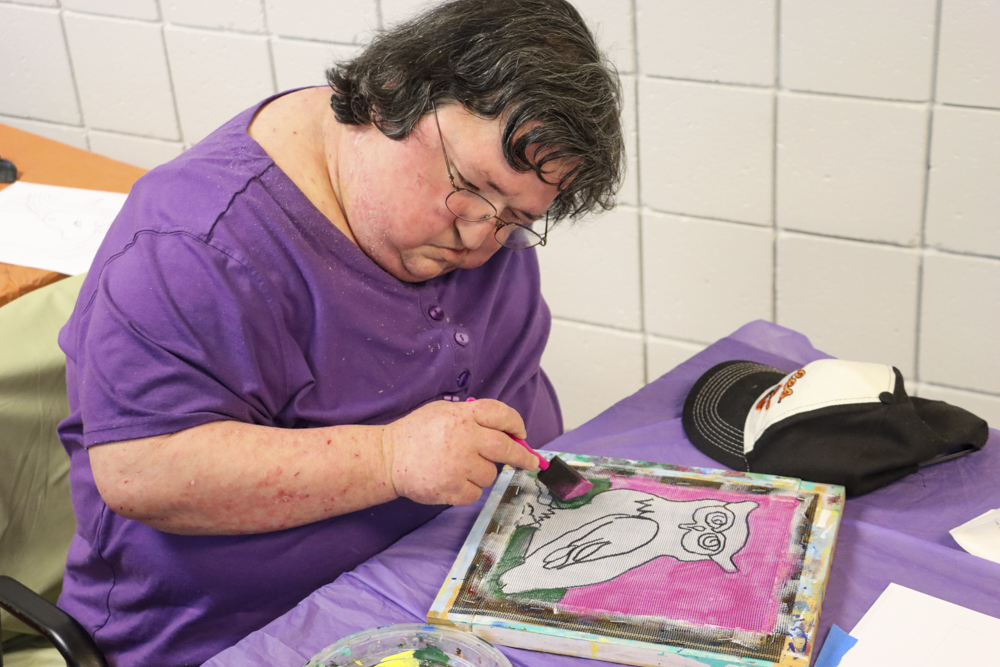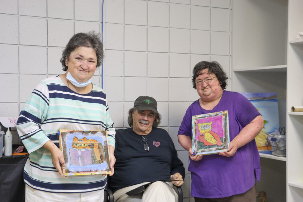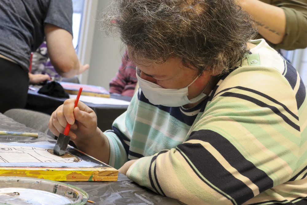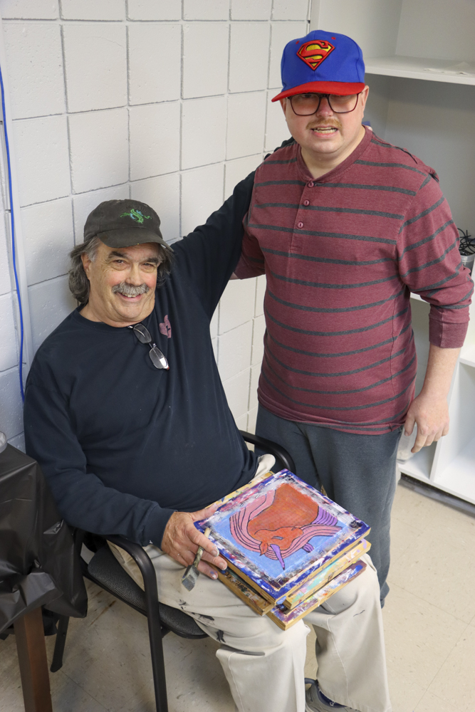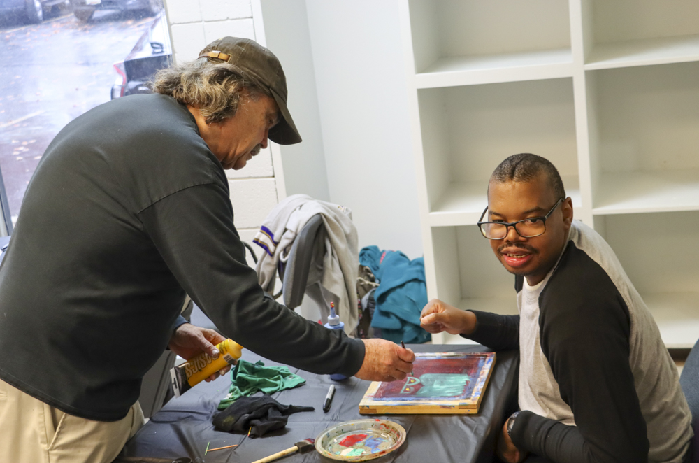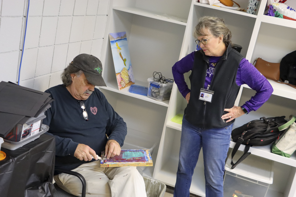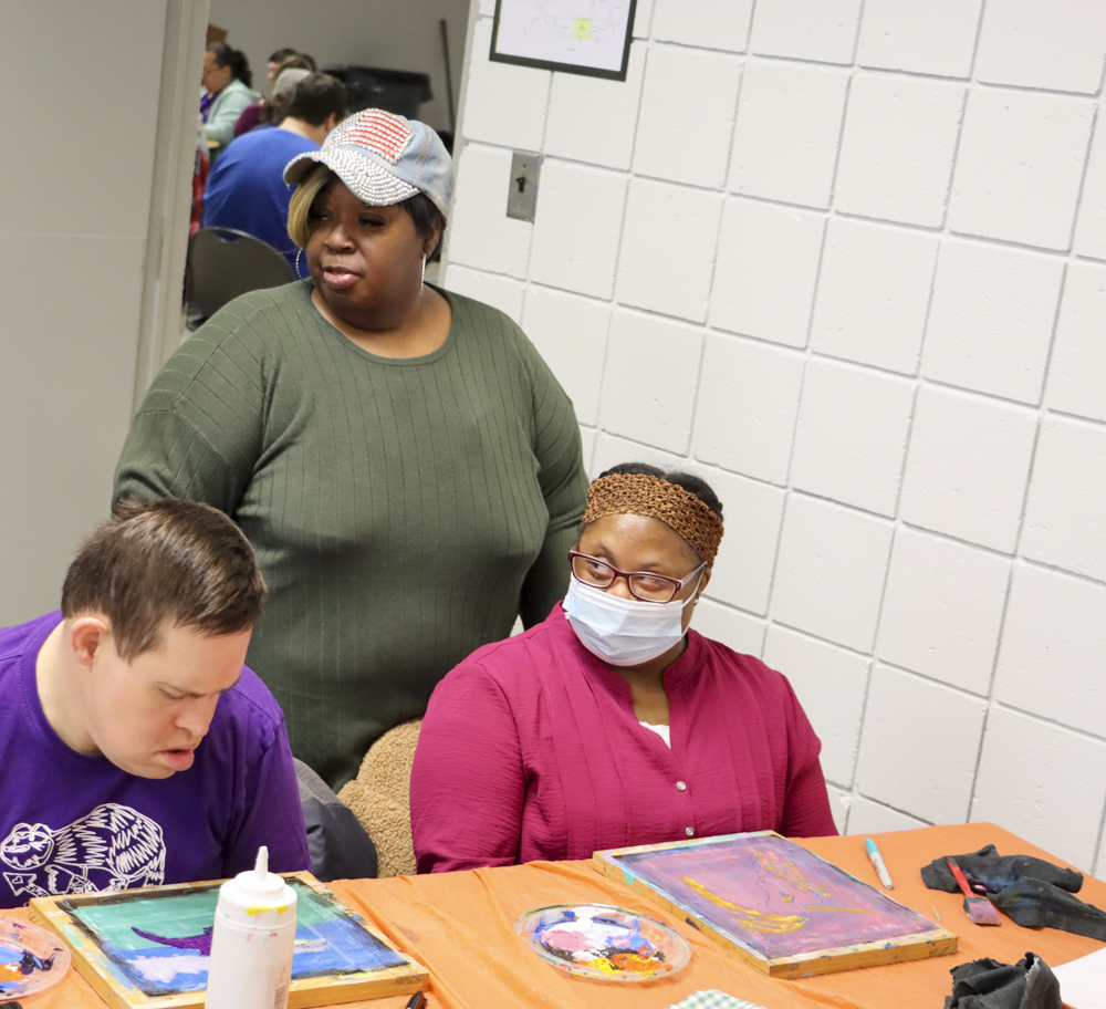 An old Baltimore art form got a tryout for folks from our Towson and Dundalk day programs last week when Master Screen Painter Michael Seipp came in for a day of instruction. From priming the screens and drawing selected images to the final painting of crabs, lighthouses, and dolphins, it was fun for all.